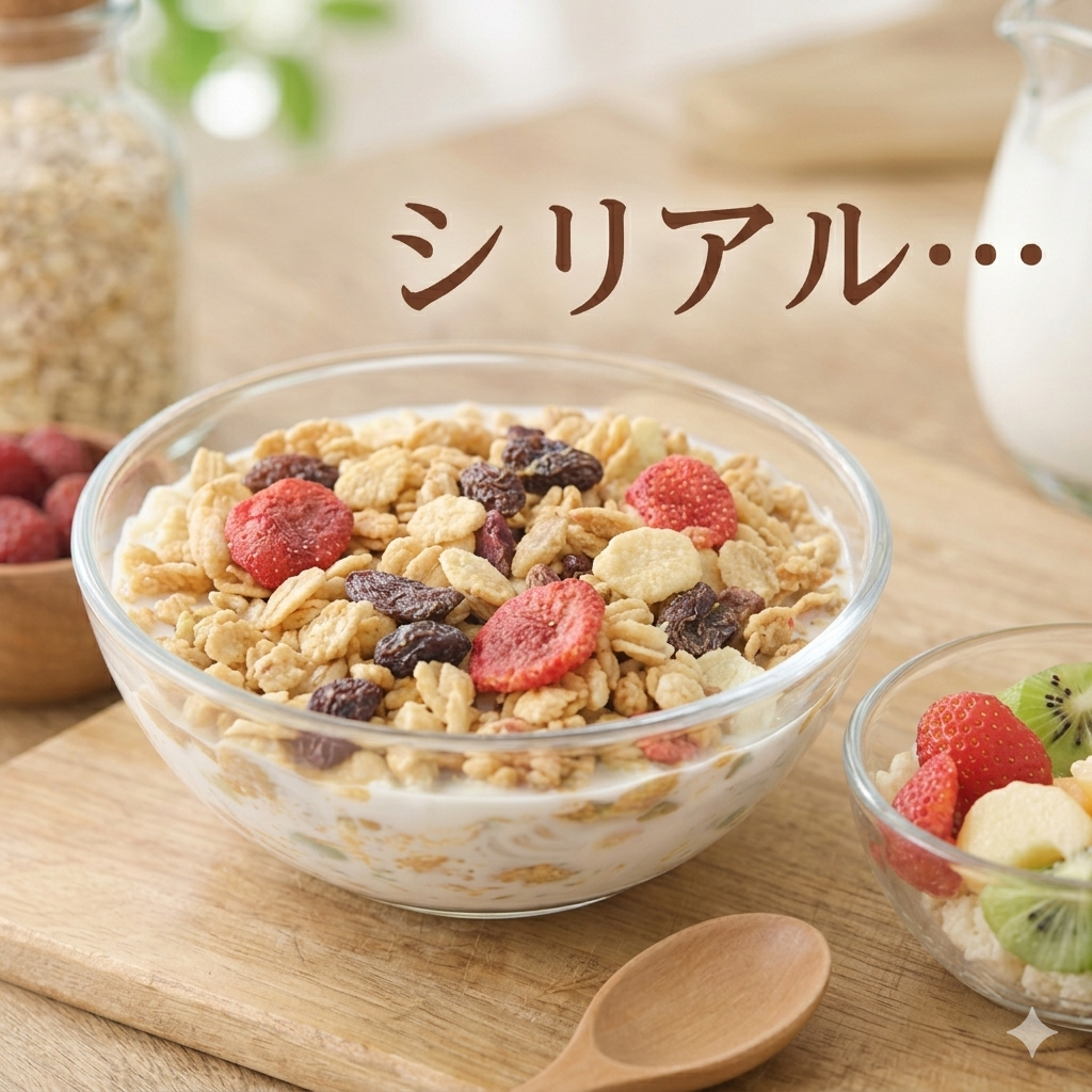 シリアルとは、穀物を加工して作られた手軽に食べられる朝食食品のひとつです。