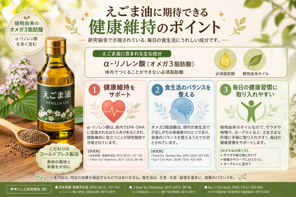 毎日の食事に取り入れやすいえごま油を選ぶことで、無理なく健康習慣を続けやすくなります。