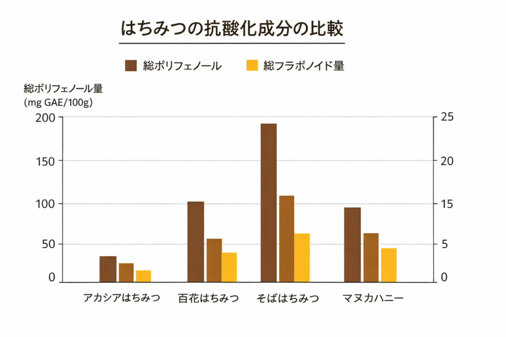 研究では、はちみつの種類によって抗酸化力が異なることが確認されています。