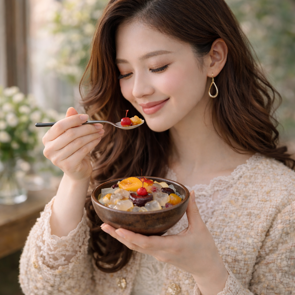 あんこやフルーツ、さくらんぼと一緒に寒天が入ったデザートは、食べやすく満足感もあり、無理なく続けやすいと感じています。
