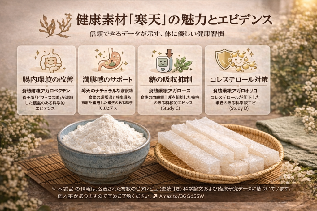 このように、寒天は食物繊維を中心とした働きにより、日常の食生活を支える食品として注目されています。