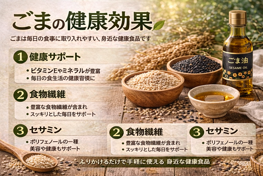また、ごまは少量でも料理に取り入れやすく、毎日の食事に無理なく取り入れやすい点も特徴です。